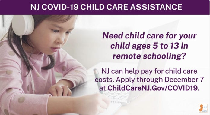 Families can apply for assistance by completing an online application at www.ChildCareNJ.gov. Those applying need proof of income and a notice or announcement from their child’s school of a remote learning schedule, including hours.