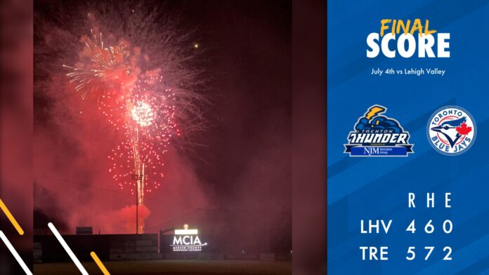 After playing deep into Sunday morning, the Bisons and IronPigs returned to Trenton Thunder Ballpark for their Independence Day series finale. On the best weather day of the six-game series, a season-high crowd of 5,791 made its way into the ballpark to celebrate the holiday and wasn’t deterred by an early 3-0 IronPigs lead. *T.J. Zeuch *delivered one of his best starts of the season and *Rowdy Tellez *homered in a 4-RBI performance as the Herd (31-21) won their third straight series with a 5-4 win.